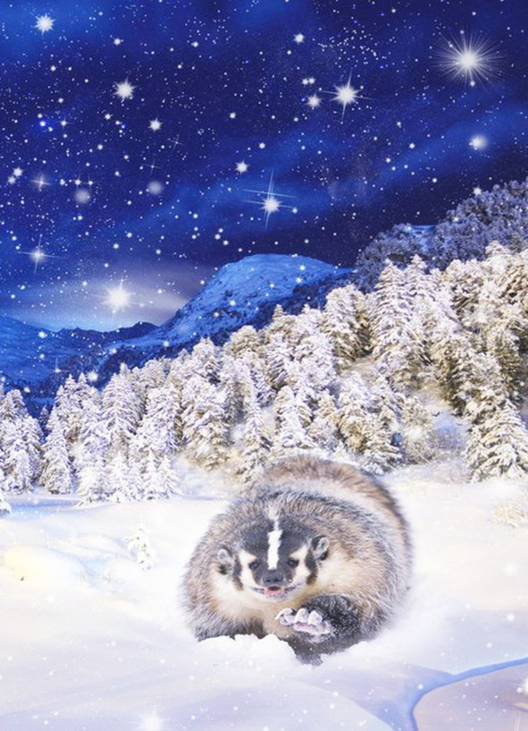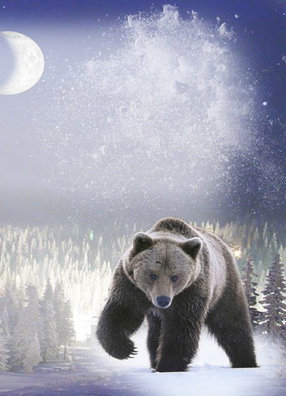 Огромными лохматыми хлопьями падал снег, наряжая лес в новогодний наряд. На тёмно-синем ночном небе яркой мерцающей гирляндой зажглись большие и маленькие звёздочки. Медвежонок Дао шел по лунной дорожке, которая вела прямо к чуть видному костру, вокруг которого в эту новогоднюю ночь соберутся все его друзья. Яркий оранжево-красный огонь звал к себе, притягивал своим теплом и светом, пробуждал волнение от непредсказуемости встреч с друзьями.