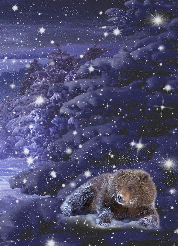 На полянке у костра уже хозяйничали его братья – Лис и Чек. Дао же немного задержался, готовя для друзей сюрприз. День у Дао выдался суетный, но всё, что он задумал, – получилось! И от этого его душа пела. Он раскинул лапы, как будто хотел обнять весь мир, и улыбался, наслаждаясь своими ощущениями. Огромный, мягкий, нежный клубок из снежинок упал ему на самый кончик носа. Дао аккуратно, боясь нарушить красоту, снял ажурный подарок, и он растаял на его тёплой лапе. «Воистину волшебная ночь», – подумал Дао. Лунный свет золотым ковром устилал его путь. Справа и слева вперемежку стояли сосёнки в пышных сарафанах и молоденькие ёлки в треугольных платьях. Едва покачивались раскидистые дубы в меховых шляпах. Берёзки в легких ажурных шалях шептались вокруг.