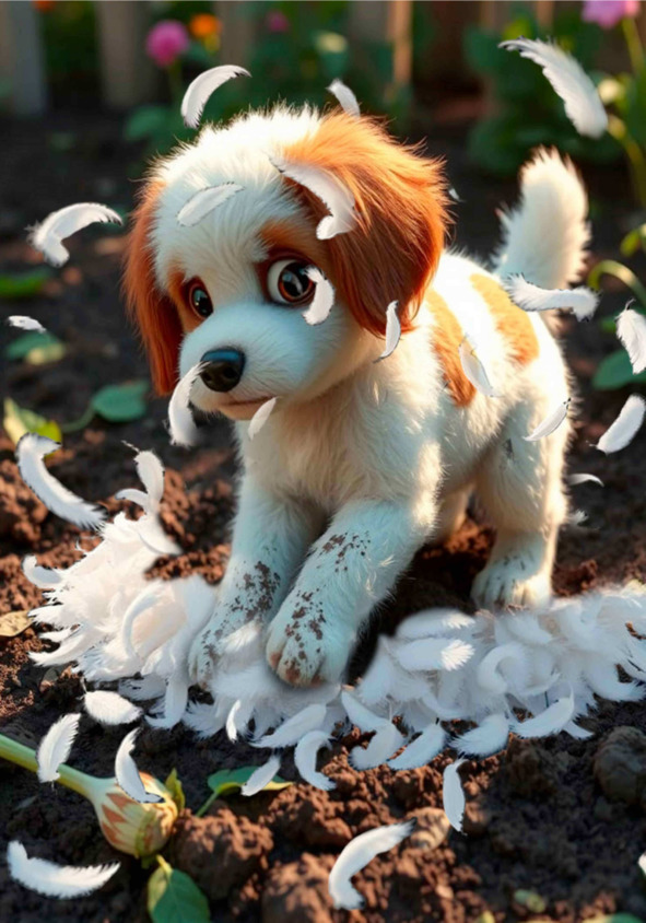 Но однажды, разыгравшись, Тим в пух и перья разодрал сушившиеся на солнышке подушки, опрокинул ведро с водой, «перевернул» только что засеянные грядки. Ему было очень весело! Он и не подумал о том, что хозяйка, не разгибая спины, трудилась над ними несколько дней.