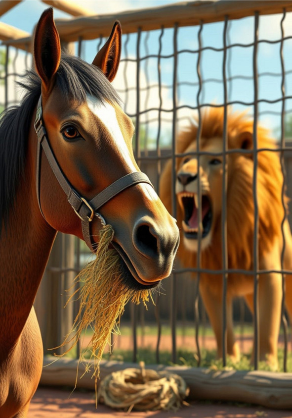 Было утро, и всех зверей зоопарка кормили завтраком. Мудрая Виздом мирно жевала сено. Оно было не такого вкуса и запаха, как на её далекой Родине, но добрые руки смотрителя согревали ей душу, и она часто вспоминала прежних хозяев. Её воспоминания прервал свирепый рёв льва Юзлеса.