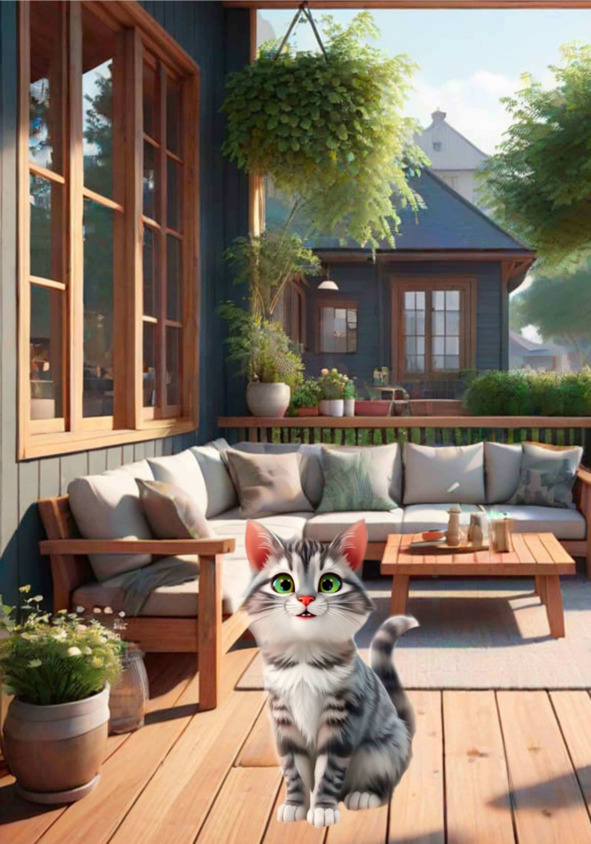 – Я царь веранды! – заявил котёнок Тигрик, залезая в любимое садовое кресло и принимая позу льва.