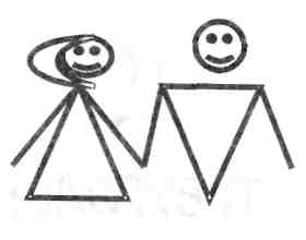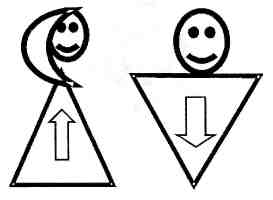 Итак, давайте разбираться по большому счету, чем же мы можем помочь друг другу, чем дополнить. А самое главное, – устроим большую разборку с рисованием на тему мужского и женского организмов. Давайте без долгих вступлений перейдем к делу: вспомним силуэты фигурок, которые рисуют на дверях мужских и женских туалетных комнат. Вспомнили. Обычно это треугольнички, к которым пририсованы головки, ручки и ножки. Но если и не пририсованы, то все равно понятно. Потому, что на мужской комнате треугольник расположен основанием вверх, вершиной вниз, напоминая силуэтом мужскую фигуру, или рюмочку.