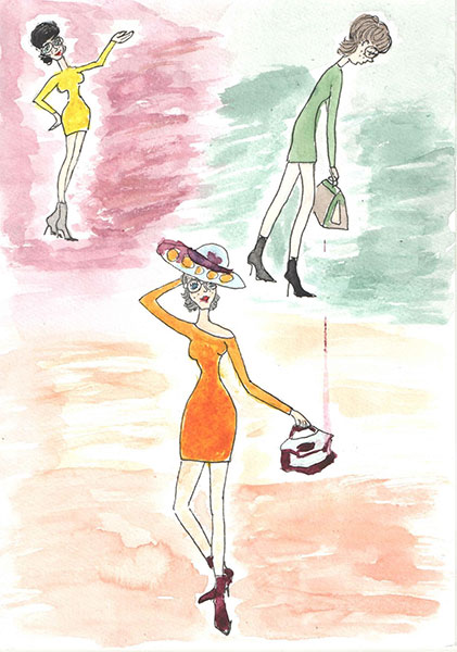Моя героиня сегодня предстала в трех состояниях – уверенная, романтичная и совсем уставшая. С помощью серых и зеленых оттенков удалось показать грусть, а оранжевый и желтый помогли сформировать радость.