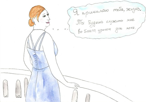 Можно было бы еще многое говорить о марте 2023 года, о его событиях и изумрудах мудрости, зафиксированных в дневнике. Среди них и просмотр с семьей картины в жанре фэнтези «Проект “Адам”» (2022 год), в которой главный герой попадает из будущего в 2022 год и встречает себя двенадцатилетнего. Фильм для меня о семейных ценностях и отношениях, о исправлении ошибок прошлого и любви к близким, о душевных травмах и обидах ребенка, который во взрослой жизни осознал это и решил все изменить. Это и опера «Макбет», и спектакль «Актеры – веселый народ» в ГИТИСе, куда я сходила с мужем. А также еще один спектакль – «Вдова миллионера», где мы побывали с подругой и после которого она поделилась своей болью. Ситуация, когда вдова миллионера устала исполнять желания своих близких, перекликалась с ее собственной. Также были долгие прогулки по лесу в наушниках, где я наполнялась музыкой плейлиста «Новая жизнь». Я слушала песни, мантры, и во время одной из таких медитаций пришло мое грандиозное видение будущего. Были забота о теле, когда я позволила себе спа и почувствовала расслабление, а после приобрела абонемент на массажи и в фитнес-клуб, и отказ от мяса, и чек-ап по здоровью, и финансовый поток от четырех сделок в марте-апреле 2023 года, когда я помогла людям решить сложные задачи, и три занятия по книжной иллюстрации, которые я продолжила в марте.