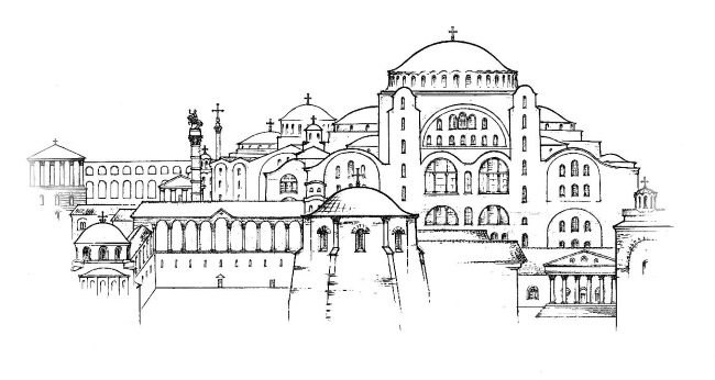 «Вселенское величие Софии Константинопольской осознавалось современниками»[1]. Храм Святой Софии стал для них национальным святилищем. «Он стал для византийцев Храмом вообще, Храмом по преимуществу, средоточием всех молитвенных памятей и воспоминаний. И вместе с тем стал символом царства, символом царственного достоинства и власти, – «мать нашего царства», говорил о Софии уже Юстиниан…»[2]. Империя строила «…такую церковь, какой еще никогда не было со времен Адама и какой никогда более не будет…»[3].