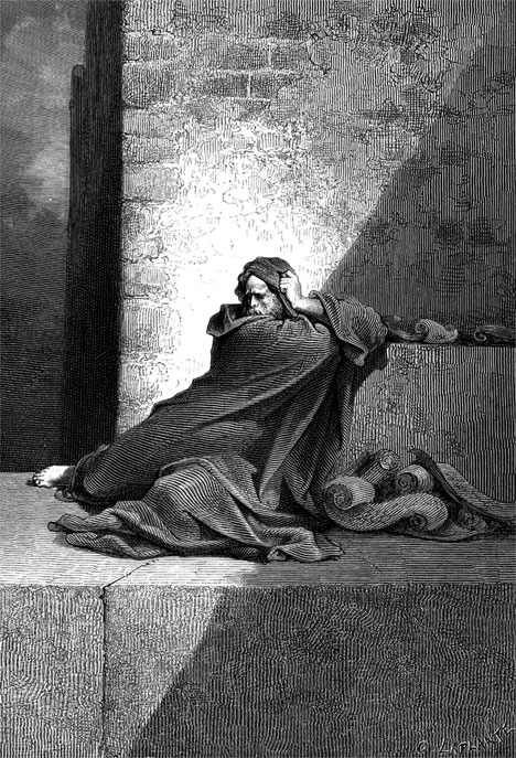 10. Сидят на земле безмолвно старцы дщери Сионовой, посыпали пеплом свои головы, препоясались вретищем; опустили к земле головы свои девы Иерусалимские.