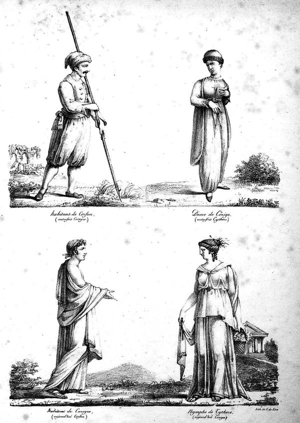 Гравюра полковника Жана-Батиста де Сен-Венсана. Настоящие и древние обитатели острова Корфу (Керкиры)