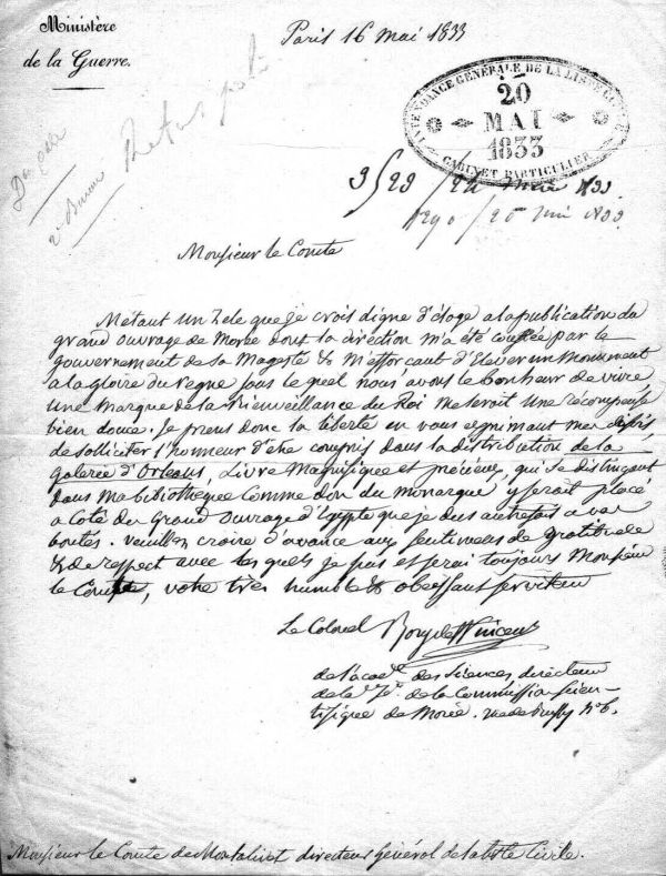 Обращение полковника Бори де Сен-Венсана в Военное министерство по поводу экспедиции в Морею от 16 мая 1833 года