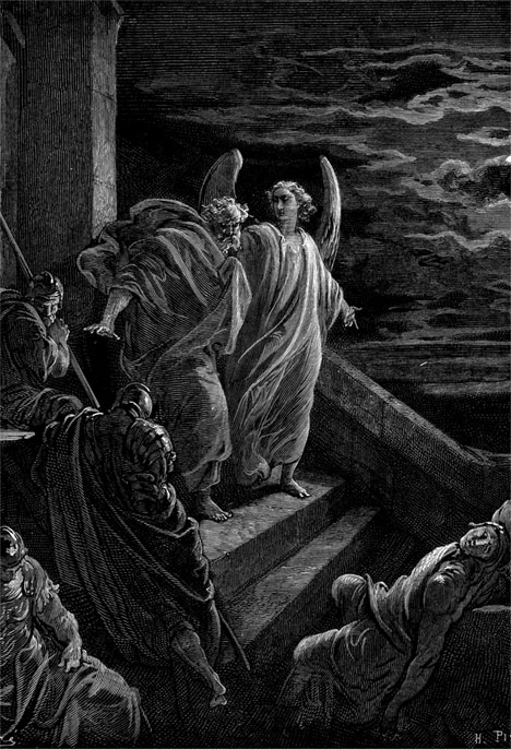 Апостол Петр выводится из темницы Ангелом. (Деяния 12:1–7)