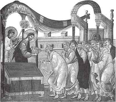 То, что Спаситель принял на Себя чин иерея и архиерея нашего, Он Сам открыл нам. Это проявилось в том, что Он, пребывая Словом Божиим, воплотился ради нас, и мы получили свидетельство о Нем от Отца. Он был рукоположен Духом, как это предсказал еще Исаия: И произойдет отрасль от корня Иессеева, и ветвь произрастет от корня его; и почиет на нем Дух Господень (Ис. 11, 1–2). Посмотри же, как Он принял это чудесное и преславное рукоположение – Он, Бог по естеству, Всемогущий, и Вседеятельный, и Святой (ибо Он – Божие Живое Слово, Святое и Всемощное), ради нас тем не менее принял рукоположение от Отца по человечеству.