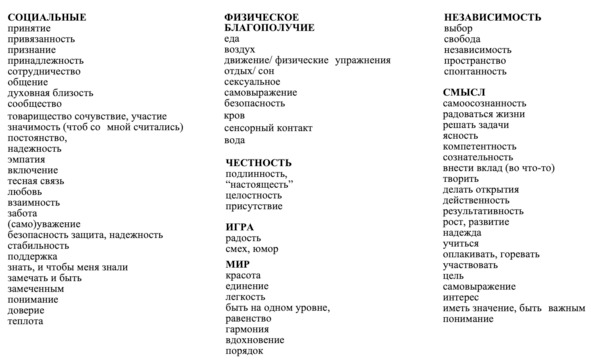 ВластьНезависимостьЛюбопытствоПризнаниеПорядокБережливостьЧестьИдеализмСоциальные связиСемьяСтатусМестьРомантикаЕдаФизическая активностьПокой