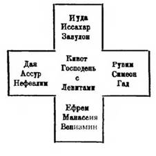 Графическое расположение израильских полков вокруг скинии можно изобразить таким образом: