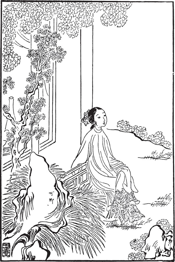 Она попрощалась с госпожой Цинь и в сопровождении служанок, которые пришли вместе с нею, и нескольких служанок из дворца Нинго через боковую калитку направилась в сад. И вот каким был этот сад: