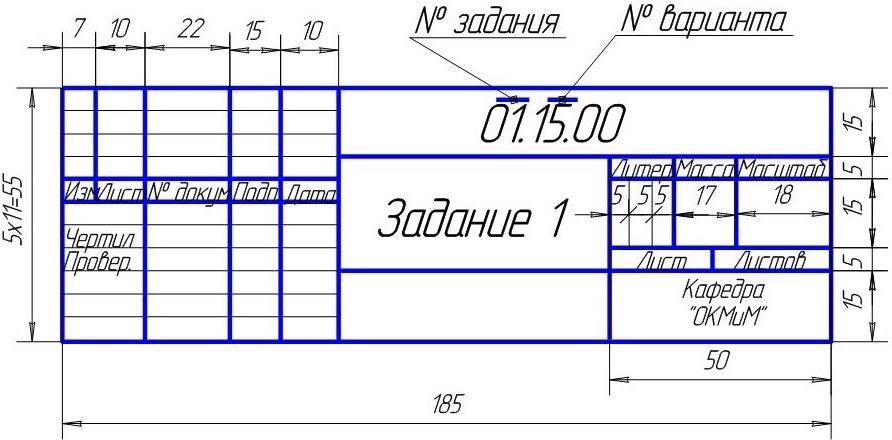 Чертежи заданий выполняются на листах чертежной бумаги формата А3 (297х420 мм) (рисунок 1). В правом нижнем углу формата помещают основную надпись по форме 1 (рисунок 2).