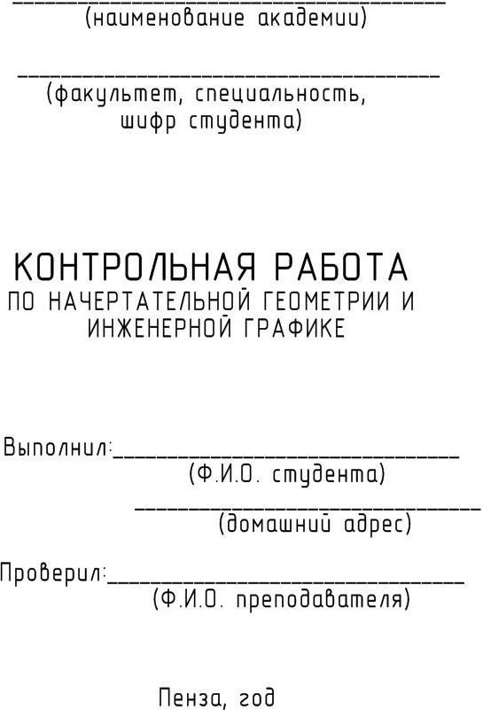 Контрольная работа по начертательной геометрии и инженерной графике представляет собой чертежи, которые выполняются по мере последовательного изучения курса.