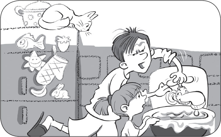 Однажды баба Поля, ее внук Володя и внучка Оля остались дома одни.