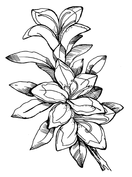 Магнолия – дерево с крупными, темно-зелеными листьями и белыми большими цветами, с опьяняющим ароматом.