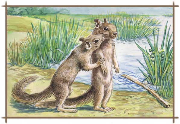 Вот наконец водная преграда осталась позади. Зверьки вышли на песок, отряхнулись, затем один принялся обихаживать другого, отжимая с него лапками последние капли воды. Любопытная пара!