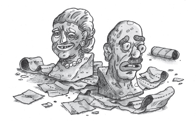 Развернув подарок, я чуть не вскрикнул. Они слепили для меня две маленькие глиняные подставки для книг в виде бюстов с их головами: один с папиной, другой с маминой.