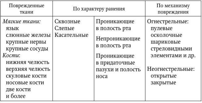 При классификации травматических повреждений челюстнолицевой области следует различать степень их тяжести, которая определяется объемом и локализацией ранения, видом пораженной ткани, характером ранения и общим состоянием пострадавшего.