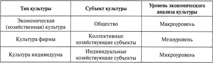 Таким образом, экономическая культура общества оказывает прямое воздействие на экономическую культуру личности, и в то же время динамика и эффективность хозяйственной деятельности общества определяются экономической культурой составляющих ее личностей. Следовательно, можно выделить три уровня содержательного анализа феноменов культуры (см. табл. 1).