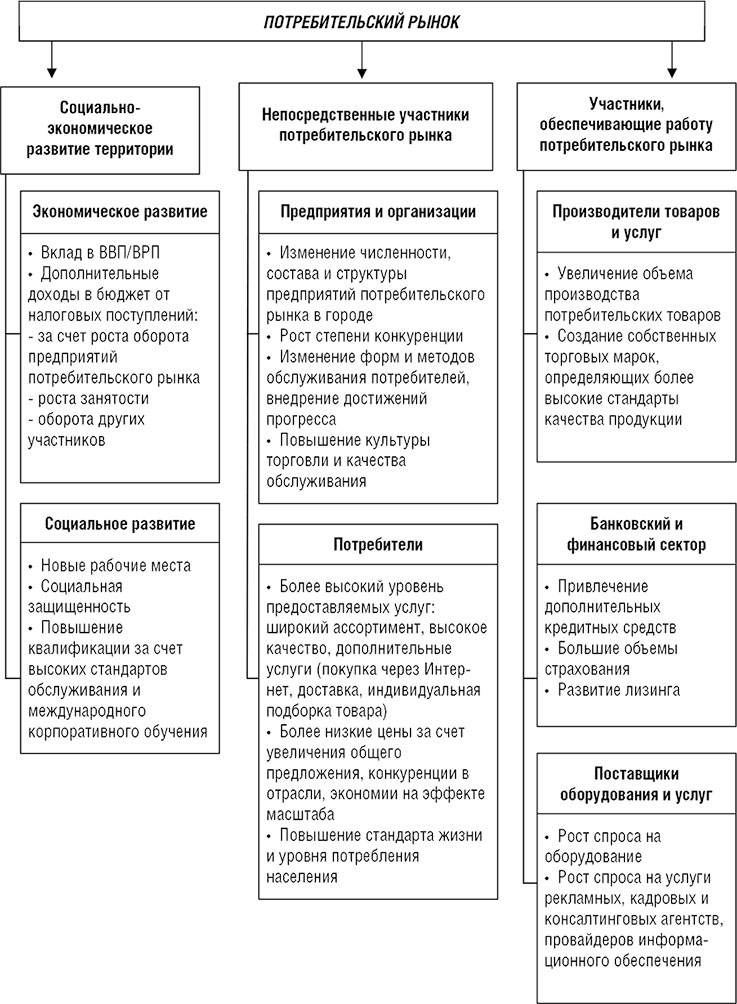 Развитие потребительского рынка дает мультипликативный эффект в других секторах экономики (так, например, в банковском – увеличение объемов потребительского кредитования) и т. п.