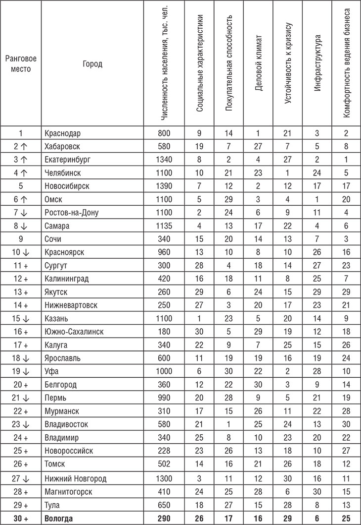 Согласно исследованиям финансово-экономического журнала «Forbes», в 2010 г. город Вологда вошел в рейтинг лучших городов России для создания и развития компаний, работающих на потребительских рынках (табл. 1.3).