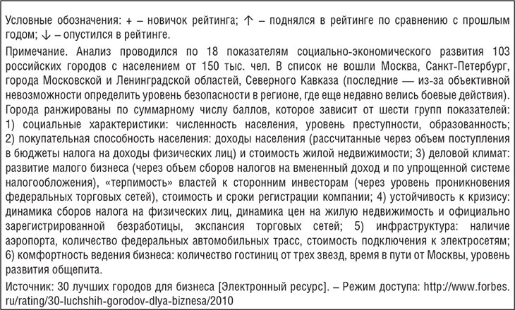 Таблица 1.3. Рейтинг 30 лучших городов для ведения бизнеса в 2010 г. (по данным «Forbes»)