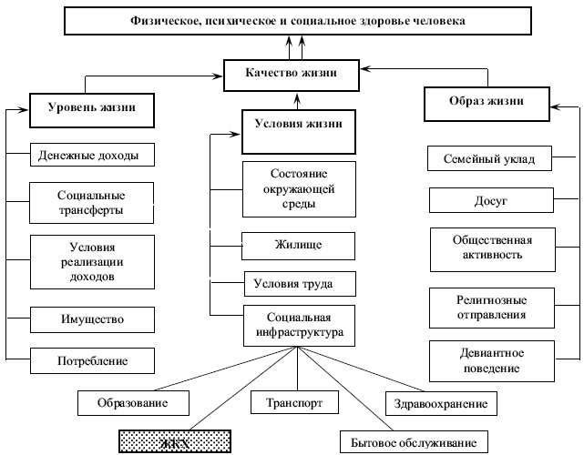 Рис. 2. Блок-схема состава и взаимосвязи качества жизни населения