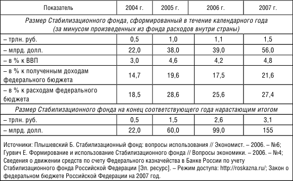 Одна из главных бед бюджета 2007 года, как уже отмечалось выше (см. табл. 1.2.3, 1.2.4), – замораживание 27,4 % доходов бюджета в Стабилизационном фонде (средства которого хранятся за рубежом), и, по некоторым оценкам, «только прямые потери от инфляционного обесценивания Стабфонда достигнут к концу грядущего года 300 млрд. руб., что больше ассигнований, выделяемых в 2007 г. на финансирование «приоритетных национальных проектов»[18].