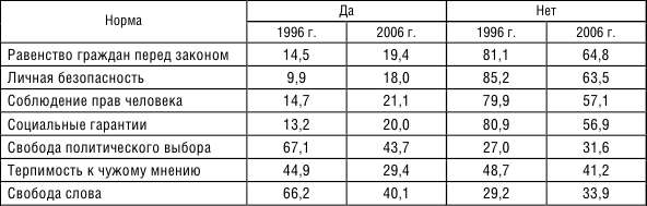 Таблица 1.2.8. Как Вы считаете, обеспечиваются ли государством нормы демократического общества в нашей стране? (Вологодская область; в % от числа опрошенных)
