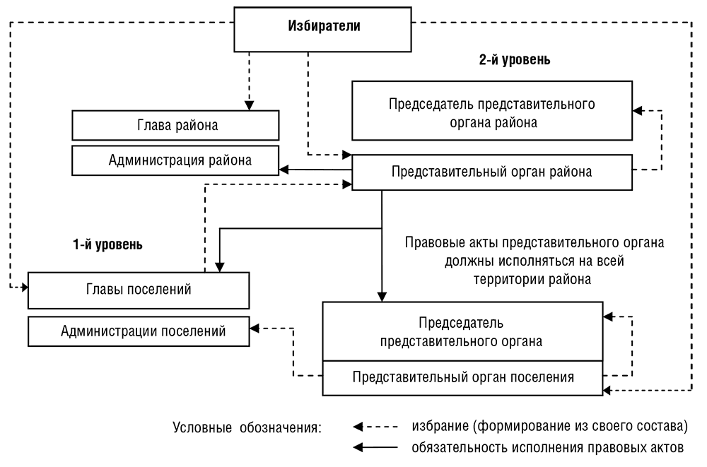 Рисунок 1.1. Организационная структура местного самоуправления в муниципальных районах [92]