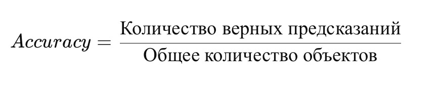 Точность (Accuracy) Показывает, какая доля предсказаний оказалась верной.