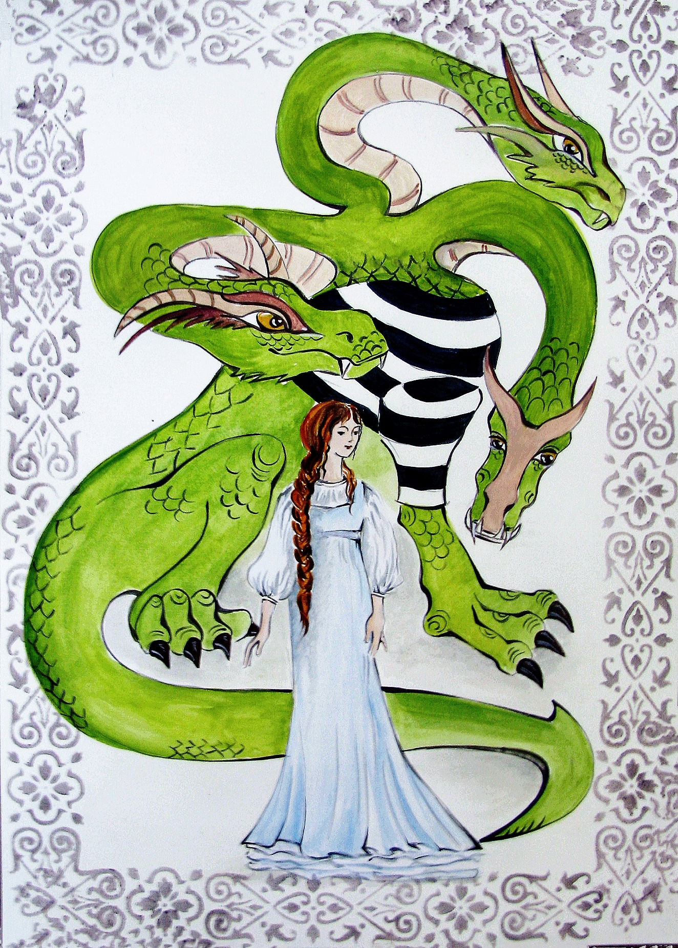 – Мама!!! – ору я, когда кто – то подхватывает меня и поднимает в воздух. Рванулась, но выбраться из захвата не получилось. Подняла голову. Теперь понятно. Меня похитил динозавр типа «ящерица летающая, злопакостная». Не, не динозавр…. Голов уж больно много. Целых три! А, это же этот, дракон мутировавший, Змей Горынычем зовущийся! И ведь не отпускает. Может, за лапу куснуть? Тогда отпустит? Нет, не буду. Мало ли, где он шатался? Посмотрю, куда он меня принесет. «Змеишаэролайнс» – доставим Вас куда угодно. Но не факт, что туда, куда Вам нужно.