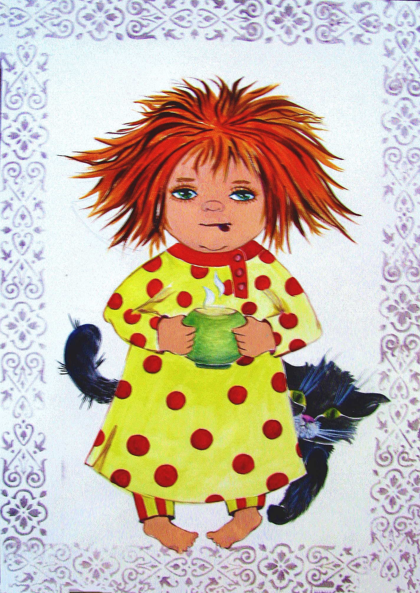 Вечером, в половину одиннадцатого, я пошла на дело. В первой кладовушке ничего не оказалось. Во второй были лишь крупы и соль, а третья была закрыта. Я огляделась по сторонам и вытащила связку отмычек. Совесть твердила, что я поступаю плохо, Опыт говорил, что любопытство погубило не одну здравомыслящую кошку и фиг-знает-сколько не здравомыслящих девушек. Разум молча листал «Уголовный кодекс», а Любопытство потирало ручки. Я мысленно нокаутировала Совесть, заткнула пирожком Опыт, отобрала познавательную книжку у Разума и погладила по головке Любопытство. На десятой отмычке дверь сдалась и, жалобно скрипнув, отворилась. Вот это да! Сколько красочки, сколько кисточек! Художник во мне активно зачесался и полез наружу с идеями. Я подхватила несколько баночек, взяла в зубы кисточку и на цыпочках покралась к Змею. Так. У него четыре лапы. Значит, четыре разных маникюра! Здесь розовый фон с ядрено-синими полосочками, тут красно-черный, здесь поставим кружочки. А его любимый коготь, которым он чаще всего в затылке чешет, покрасим в цветочек!