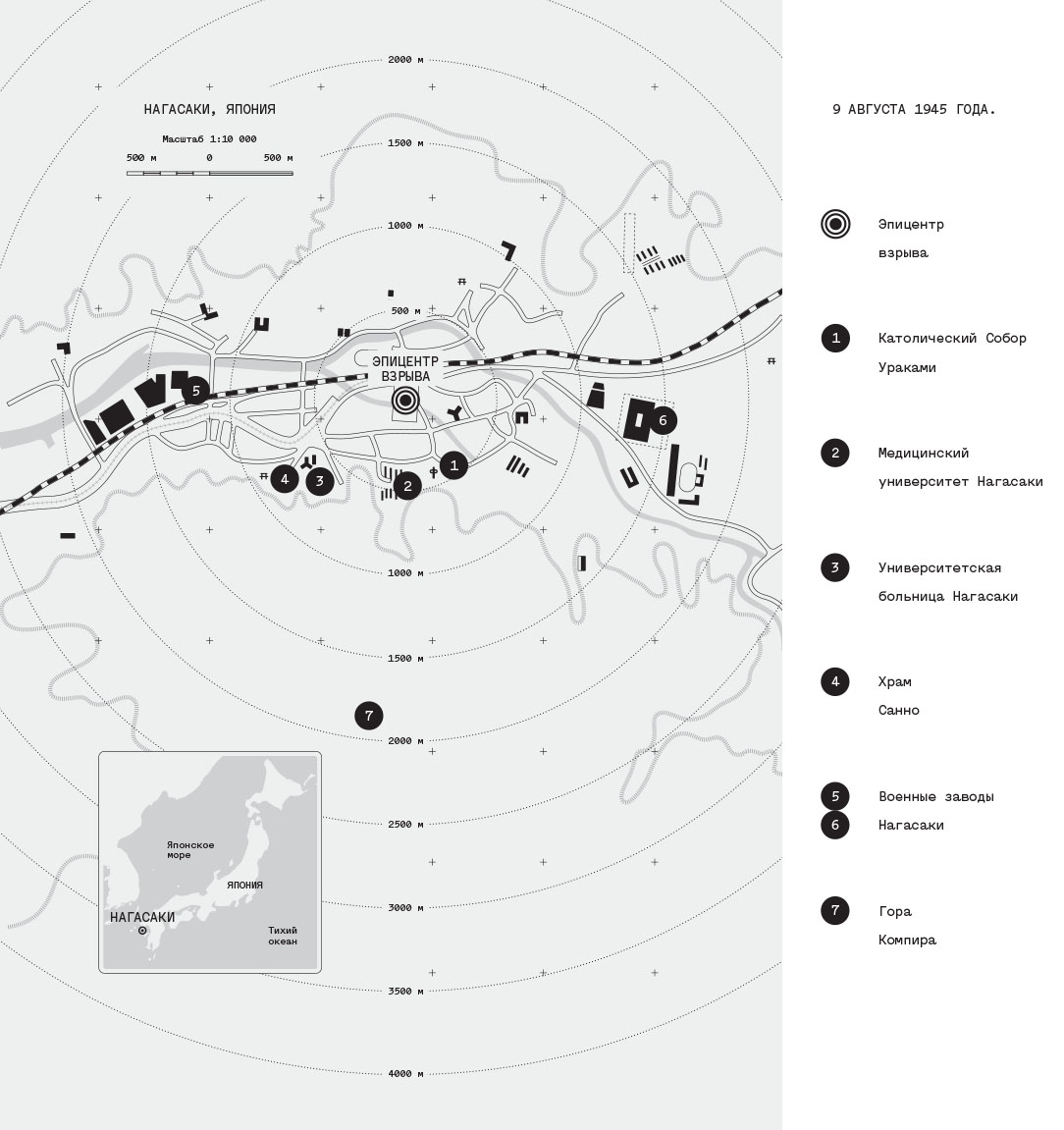 Одно событие в истории Японии не давало мне покоя с тех пор, когда я учился в школе, а потом в институте и мы изучали так называемую гражданскую оборону. В 1950-х–1960-х годах школьники и студенты подробно штудировали основы поведения в условиях применения оружия массового поражения, преимущественно ядерного.