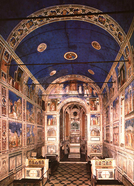 Капелла Скровеньи в Падуе. Интерьер. Вид на алтарь. Цикл фресок Джотто ди Бондоне