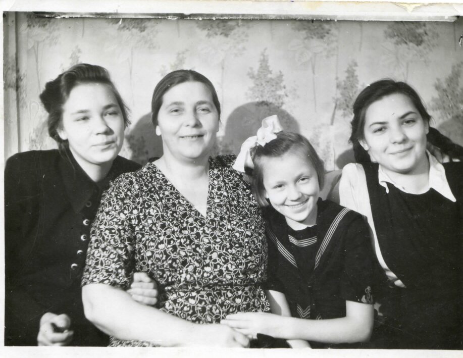Ольга Васильевна с дочками (Вера, Лиля, Валя) в Ленинграде, 1950 г.