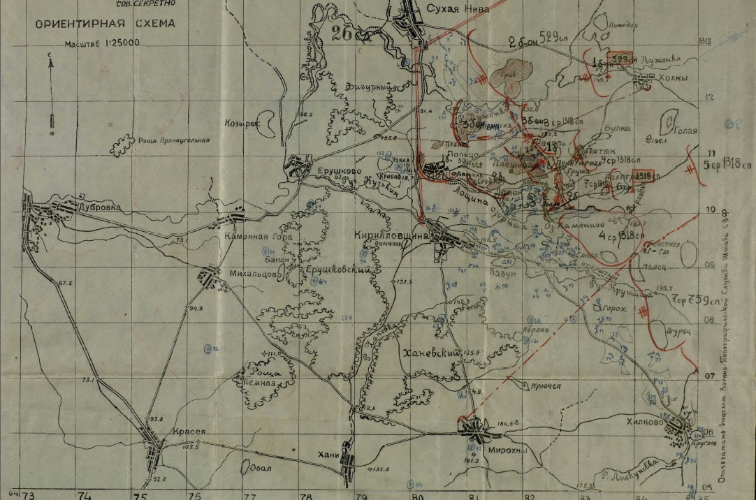 Будучи вычислителем, я часто бывал не только в штабе дивизиона, но и полка. Бывая в штабе дивизиона, меня частенько комиссар дивизиона Бойкачёв просил написать под его диктовку политдонесения комиссару 788 артполка И.Д. Кабаничу. У него был скверный почерк. Ещё во время подготовки операции под Никольском, о которой я уже написал, в штаб дивизиона, как раз, когда я писал политдонесение от имени Бойкачёва, неожиданно зашла группа начальства. В том числе были, как я потом узнал, комиссар полка И.Д. Кабанич, ответственный секретарь партбюро П.А. Олексенко и начальник штаба полка А.П. Сунцов. Все, кто в это время находились в штабе, встали поприветствовать, а комиссар полка, увидев в моих руках политдонесение, сказал: «Вот, оказывается, кто от имени Бойкачёва составляет такие складные и довольно грамотные политдонесения». Эту группу мне, по приказанию начальника штаба нашего дивизиона старшего лейтенанта Леконцева, пришлось сопровождать на КП командира дивизиона, где организовывалась та самая разведка боем.