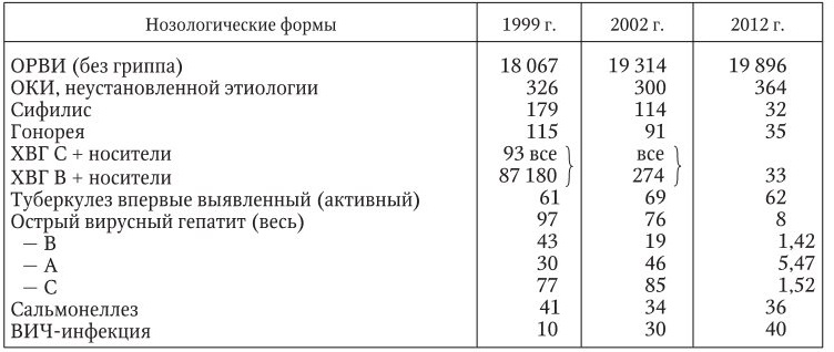 Инфекционная заболеваемость населения России (на 100 000 населения)