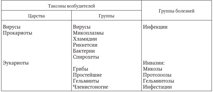 Таксономически возбудителей инфекционных болезней делят на царства вирусов, прокариот и эукариот (табл. 3).