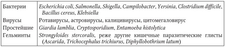 Самой частой причиной диареи являются острые кишечные инфекции (ОКИ), вызванные различными бактериями, вирусами, простейшими, гельминтами (табл. 9).