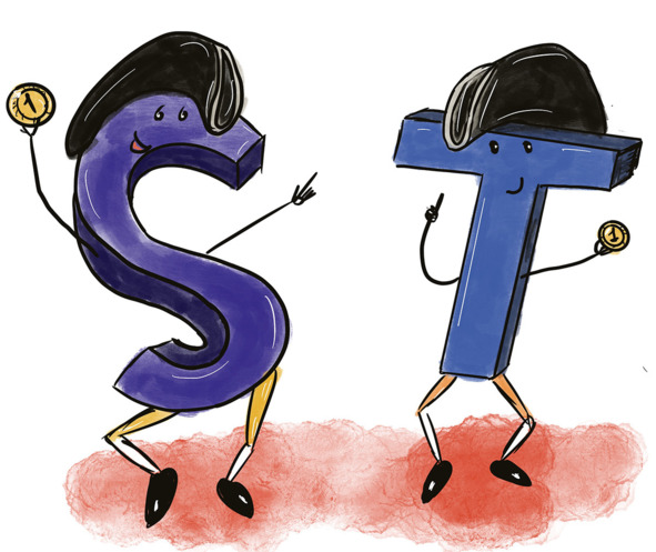 Лорды S (Эс) и Т (Ти) на шиллингСпорят, чьи рейтузы шире.
