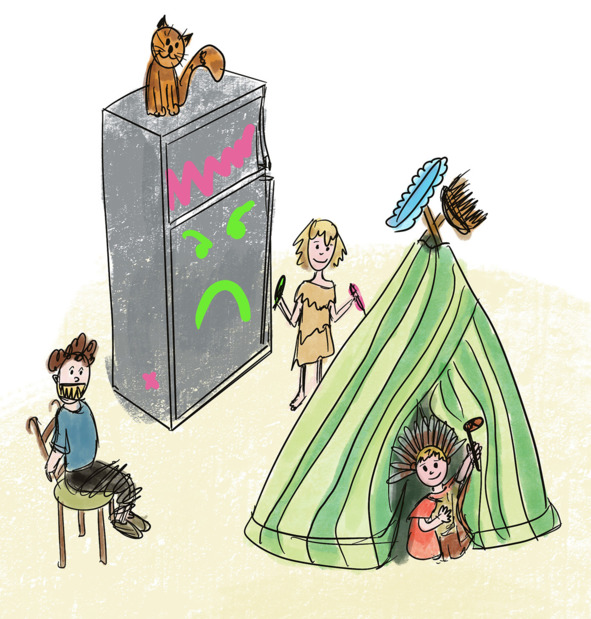 Эй! Мам! Эй! Мам!Мы построили вигвам.Поломался в спальне шкаф,В нём застрял наш томагавк.Холодильник без проблемРазукрасили в тотем.Пересёк сосед границу —В сеть попался бледнолицый!Не узнала? Не похожи?Острый клык – вождь краснокожих!И его сестра – Пурети!Это мы же, твои дети!