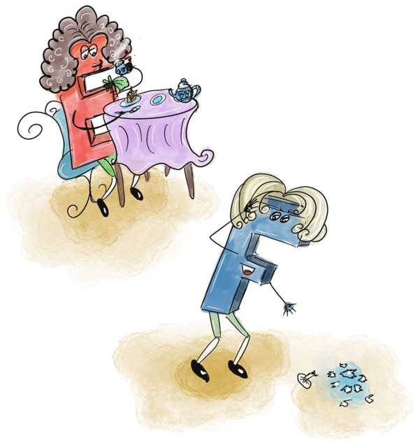 Лорд Е (И) пил чай с бисквитом,Он не чавкал, был воспитан.Фужер разбился звонко —Лорд F (Эф) ругался громко!
