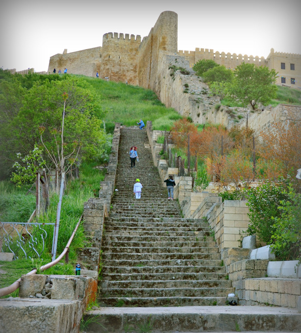 Подняться к крепости Нарын-кала получилось только до середины горы, а там такой ветер гуляет, что мою шляпу не просто уносило, её рвало из рук, а порою почти выворачивало наизнанку. Несмотря ни на что я наслаждалась видом окрестностей и панорамой города сверху.