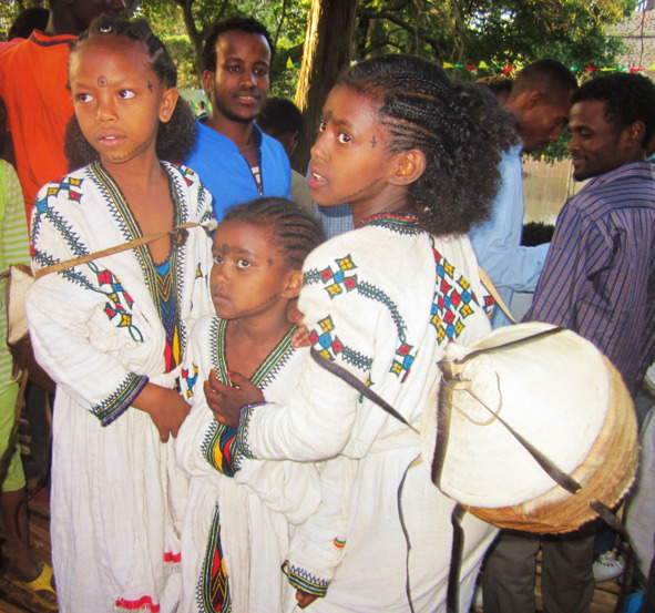 К вечернему выходу в церковь многие прихожане надевали свои традиционные одежды светлых тонов атласа с поясами расшитыми бисером. Женские платья здесь украшают вышивкой. Высокие барабаны кебаро вещь в церкви необходимая. Их приносят с собой верующие, бьют в них перед началом службы и в её конце, а после мероприятия снова забирают свои барабаны домой. Поэтому странная процессия из церкви мне стала непонятна, я только с любопытством её рассматривала. Позже уяснила для себя тонкости обычаев эфиопов.