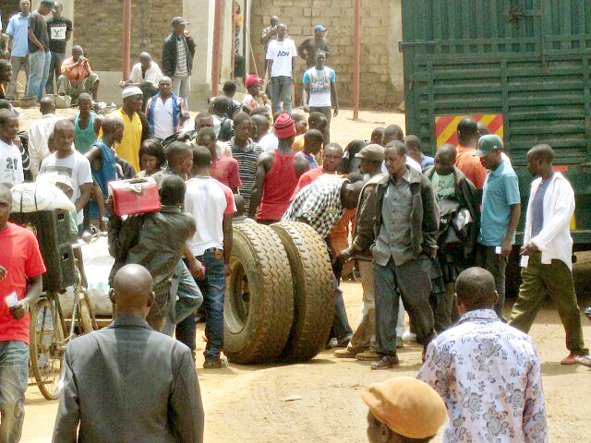 На границе произошёл комичный инцидент. Внушительный большегруз едва сдвинулся с места, а у него спокойненько выкатилось среднее колесо. Оно продолжало катиться рядом, пока очевидцы не закричали командиру. Тот затормозил и вместе с толпой рванул за «беглецом», при этом громадина тяжеловесно подпрыгивала и только набирала обороты, разгоняя носильщиков с лоточниками, да зазевавшихся недотёп. Такое можно увидеть только в Африке. Ведь здесь наплевательское отношение к транспорту. Поезжай и бойся. Ну, просто нарочно не придумать!