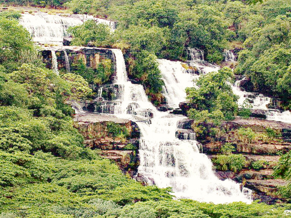 Наскоро намазалась репеллентом и вышла первая, посчитав себя виновницей того дня и решившись на встречу даже с опасными летающими насекомыми. Гора напротив рождала прекрасный каскад! Сверкая на солнце, он перекатывался через слоёные горные пласты, чтобы исчезнуть где-то в зарослях девственного леса. Его пороги плавно переходили из одного в другой, а там, у подножия, водосток успокаивался рекой среди непроходимых зарослей. Вокруг высились зелёные склоны в синем мареве, уходящие куда-то в небо. Мухи исчезли, лишь яркие бабочки порхали, да неизвестные птицы кричали. Обезьяны тявкали в кронах и ревели, время от времени мелькая в них.