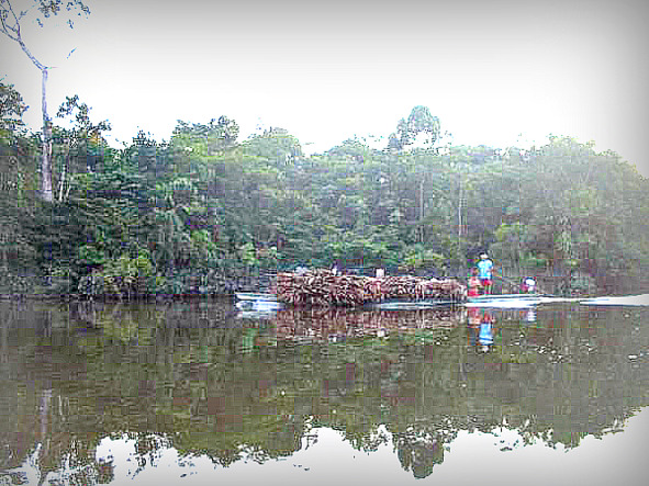 Был момент, когда мужчины насторожились при виде прибитого к берегу бревна, напоминающего анаконду. Речные воды вылизали добела ствол дерева и превратили его в подобие гигантской змеи на отмели. Но вместо того, чтобы подплыть поближе и рассмотреть предполагаемую хищницу, мужчины собрались удирать. Когда они поняли, что это безжизненное дерево, то успокоились и поплыли дальше по протокам. А я-то думала, что индейцы сельвы, находясь в лодке, никаких анаконд не боятся.